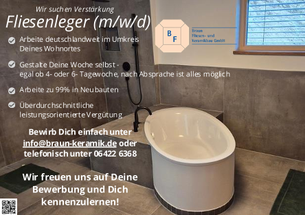 Die Braun Fliesen- und Keramikbau GmbH steht seit über 35 Jahren für höchste Qualität, präzises Handwerk und innovative Lösungen in der Fliesen- und Natursteinverlegung.